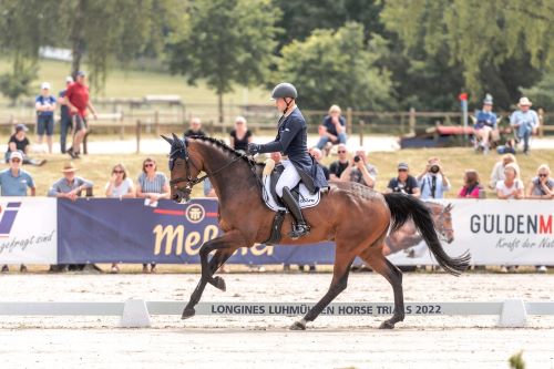 Auf Platz drei in der Deutschen Meisterschaft, die im Rahmen der CCI4*-S Meßmer Trophy ausgetragen wird, liegt derzeit Lokalmatadorin Alina Dibowski mit ihrem Barbados. Vor sechs Jahren hat sie in Luhmühlen mit diesem Pferd an ihrer ersten Deutschen Meisterschaft
