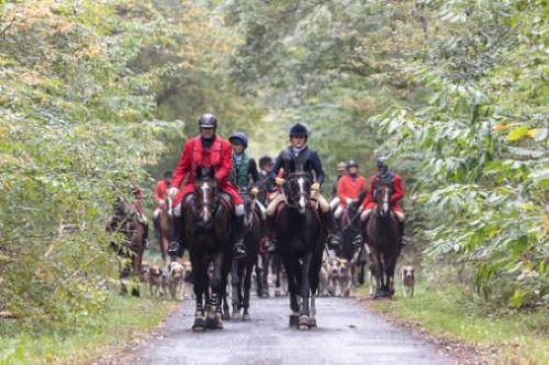 Am Samstag nun die letzte Jagd, knackig und schnell. Anschließend nur glückliche Gesichter, insbesondere bei den Kindern. Da das Reiterhotel Vox auch ein Ponyhotel ist, befanden sich viele Ferienkinder vor Ort, die einen gesonderten Trakt des Hotels bewohnen, mit großem Schlafsaal und eigenem Speisesaal. Es war immer schön anzusehen, wenn die glücklichen Kinder mit ihren Ponys loszogen. Immenhof pur! Die Kinder waren immer zum Curée dabei, haben zum Teil die Pferde gehalten und betreut, so dass wir ihnen sehr gern die Gelegenheit gegeben haben, vor dem Curée der Abschlußjagd eine große Runde um den Hof direkt hinter den Hunden zu reiten, Bruch und Jagdknopf inklusive. Sie waren total begeistert. „Ich werde Jagdreiterin“, rief ein Mädchen.