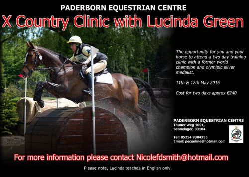 Das Paderborn Equestrian Centre (33104 Paderborn) bietet im Mai 2016 wieder einen zweitägigen VS-Lehrgang mit Lucinda Green MBE an. Die Olympiareiterin und sechsfache Badminton-Siegerin wird am 11. und 12. Mai nach Sennelager kommen und alle Level unterrichten.