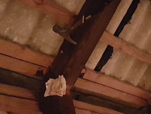 Oooops! Plötzlich war Geld im Hut und das Erstaunen groß. Um alles unumkehrbar zu gestalten nagelte der Hausherr und Zimmermann Sven Arlt das Geld gleich mit einem riesigen Hammer an die Decke. Damit hatte das Kind auch gleich seinen Namen: Hammerjagd!