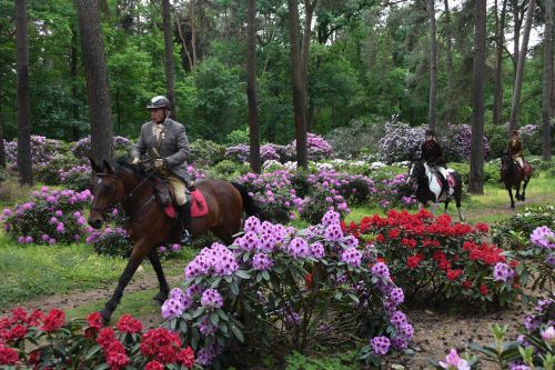 Rhododendren – immergrün und blütenreich. Sie lieben den Halbschatten des Waldes und der Rhododendron-Wald bei Dülmen ist im Mai ein atemberaubendes Farbenspiel. Im Zauberwald von Merfeld war die Beagle Meute Münsterland auf der Schleppe. Zur rechten Zeit am rechten Ort.