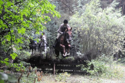 Jörg Meiler hatte nicht nur im Vorhinein die Strecke erarbeitet, er ritt auch die Schleppbegleitung und führte über tolle Wege auf und ab durch den Faberwald. Meiler und Markus Kratzer hatten bei der Vorbereitung wieder einmal keine Mühen gescheut. Die Wege waren bestens bereitbar, die Hindernisse fügten sich wunderbar ein. So kurz vor der Hauptsaison stehen alle Beteiligten einer Jagd für gewöhnlich schon besser im Training als im Frühjahr, was sich deutlich an der Auswahl und Länge der Schleppen erkennen ließ. So ging es einmal mehr kreuz und quer durch den Wald über Stock und Stein, ganz wie die Beagles es mögen. Die Hunde waren wie immer schnell, spurtreu und laut. Lange und schnelle Galoppaden durch den schattigen Wald begleitet vom Geläut der Hunde und den Klängen der Jagdhörner war nach den ersten vier Schleppen der Stopp erreicht.