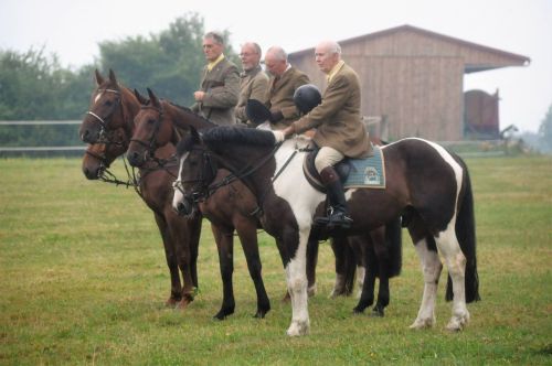 Zum Stelldichein erschienen gut 40 Reiter und viele Zuschauer. Der Innenhof des Zwiefelhofs war perfekt geeignet zum Stelldichein, für das leibliche Wohl war dank der Clubköche und der vielen Helfer wie immer reichlich gesorgt und so begrüßten sich alte Bekannte und Newcomer in entspannter Atmosphäre. Wie üblich bei den Jagden in Roth waren Reiter unterschiedlichster „Herkunft“ vertreten: clubeigene Reiter wie auch Mitglieder der Franken-, Bayern- und natürlich der Vogelsbergmeute. Musikalisch wunderbar umrahmt von den „Reiterlichen Jagdhornbläsern Franken“ verging die Zeit bis zum Satteln fast ein bisschen zu schnell.