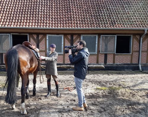 Fast hätte das Wetter einen Strich durch dien Arbeiten gemacht. Am Donnerstag waren die Pfützen in der Heide noch vereist, aber am Sonntag war der Boden gut zu bereiten und die TV-Arbeit generalstabsmäßg eingefügt in den Jagdablauf. Besonders die französischen Elemente in der deutschen Schleppjagd – das Tenue, die Musik, das Halali – beeindruckten den Beobachter aus dem Nachbarland. Aber er war auch interessiert an dem sportlichen Element, vor allem an den vielen Sprüngen unterwegs, die in Frankreich eher nicht vorkommen. ”Wir fahren auf jeden Fall”, hatte Julia Läßig im Vorfeld versprochen und ihre Zusage nicht bereuen müssen. Für das Fernsehen agierte sie als kenntnisreiche Erklärerin unterwegs und Martin Kessler hat Schumi-like chauffiert, damit keine wichtige Einstellung ungedreht blieb. Da zeigte sich augenfällig auch gleich ein wichtiger Unterschied zwischen Wild- und Schleppjagd. Nämlich, dass die Schleppjagd eben weitgehend planbar ist und es nicht dem Fuchs oder Hasen überlassen bleibt, wohin die Reise geht. ”Das hat den Journalisten wohl überzeugt.”