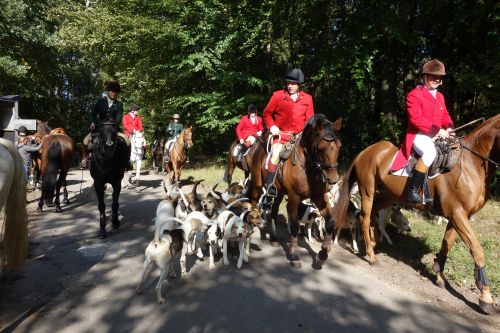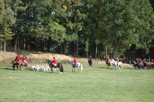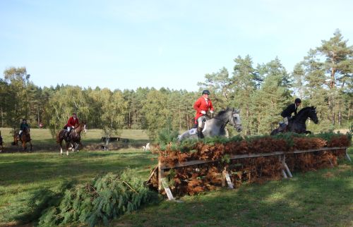 Die Sudermühlener Hausherren, Carlo und Stefan Rabeler hatten sechs Lines vorbereitet und waren auch nicht kleinlich mit Hindernissen. Jubiläumsjagd eben. Jens Möllering hatte 13 Koppeln Foxhounds mit Huntsman Heiko Lindner aufgeboten, und als Piköre waren die neue Vizemaster Lulu Steinkraus und Carl Bolten und Philipp Schwart im Einsatz. Stefan Rabeler und der Bundestrainer der Vielseitigkeitsreiter, Hans Melzer führten das erste Feld, Jochen Fischer wie (fast) immer das zweite. Gut 60 Reiter gingen auf die Strecke durch Wald und Heide.