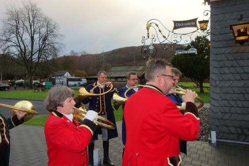 Für einen stilvollen Auftritt im Jagdfeld bemüht der stimmgewaltige Sänger auch schon mal einen Kölner Theater-Gewandschneider, und beim Geburtstag hatten die Gäste das Vergnügen, die Rallye Trompes Val du Rhin zu erleben, die ihm die „Honneurs“ bliesen.