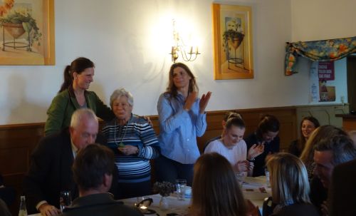 Celestina Löbbecke als Verantwortliche für die Organisation der Jagdreitertage sprach von „riesiger Beteiligung“ und ehrte dann Ingeborg Mayer für ihre langen Verdienste um diese Fixpunkte im Kalender von Dorfmark. Die ehemalige Jagdreiterin hat 40 Jahre (!) lang dafür gesorgt, dass das Sonntags-Frühstück am Hundert-Meter-Hindernis für nicht wenige Teilnehmer einer der Höhepunkte dieser Wochenend-Kurse geworden ist. Ein herzliches „dreifaches Horrido“ für die rüstige alte Dame, die weiter aushelfen will, wenn es nötig ist, war mehr als nur eine Standard-Ovation.
