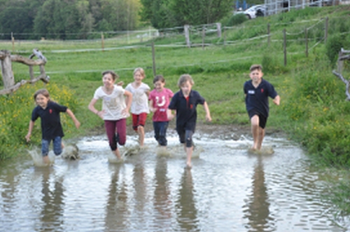 Nachdem auch dieser Teil bei großer Hitze glücklich absolviert war, wurde noch einmal gegrillt. Die Kinder spielten wieder sehr ausgiebig und nutzen sofort die Gelegenheit, sich noch einmal im Graben und im Teich abzukühlen.