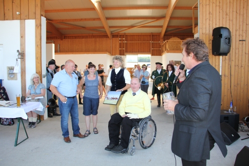 Seit 1888 ist Schleppjagd in Bayern historisch nachgewiesen, „Doch bisher ist es keiner Meute gelungen, über einen Zeitraum von 30 Jahre ihre Meute zu halten, am gleichen Ort ihren Jagdbetrieb aufzubauen, zu fördern und zu erhalten,“ betont der SvB, der in 30 Jahren wohl 120 Schleppjagden und etwa 80 Trainingskurse in dem Gelände in und um Gundelsdorf veranstaltet hat. Einen Ausschnitt aus ihrer praktischen Arbeit zeigte Sissi Wiedemann mit ihrer Equipage den Gästen vom Sattel aus. Zuschauer „vom Fach“ dabei waren auch die OstWestfalen-Meutehalter Friedel und Heike Sielemann, die aus Bielefeld angereist waren um zu gratulieren.