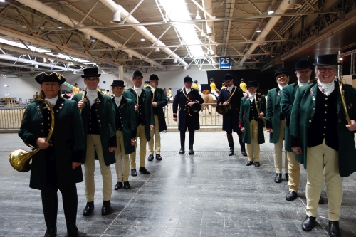In der Country-Halle 24 am Info-Stand der Meute machte wie gewohnt Ursel Bülthuis die Honneurs. Neben ihren „Stammgästen“, die jedes Jahr vorbeischauen, begrüßte sie auch neue Besucher, die sich an der Schleppjagd interessiert zeigten.