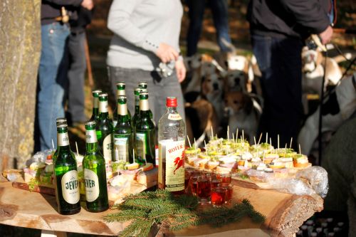 Neben einigen Feldern jagten die Beagles weitgehend durch das Waldgelände. Auch diesmal waren die Hunde - auf dem Höhepunkt des Trainings in Hochform - unglaublich schnell unterwegs. Die Equipage musste sich sputen, den Hunden zu folgen und alle Teilnehmer waren begeistert, wie schnell und spurtreu die Hunde dem Schleppenleger gefolgt sind. Abends wurde nach einem ausgiebigen und üppigen Jagdessen fleißig gefeiert und zum Abschluss wurde sonntagsmorgens noch ein kleiner Ausritt mit den Hunden unternommen.