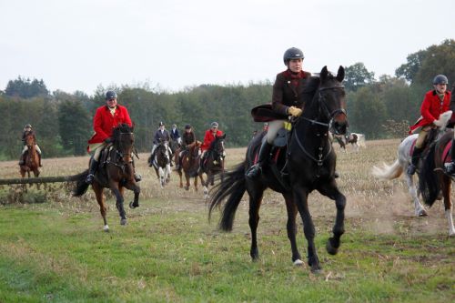 Am Hubertustag veranstaltete die BMM eine Capjagd. Über 15 km führte die Jagdstrecke zunächst über abgeerntete und gut präparierte Maisfelder. Der Reit- und Fahrverein Eggermühlen hatte der BMM freundlicherweise einige sehr einladende Sprünge auf den Feldern zur Verfügung gestellt. Danach im Wald konnten die Beagles ihre Paradedisziplin ausleben: schnell um jede Ecke zu flitzen. In den Wäldern existieren viele Wege, die gut beritten werden können. Der Boden ist sehr griffig, sodass auch für die Pferde die engen Wendungen gut im Galopp zu bewältigen waren. Auch in den Wäldern sind viele Jagdsprünge aufgebaut, die für das springende Feld gut zu überwinden, aber auch für das nicht springende Feld perfekt zu umreiten sind.