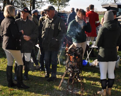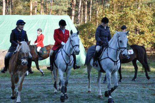 Samstag vor Totensonntag: da streckt der Winter schon mal seine frostigen Fühler aus. Minus sieben Grad am frühen Morgen! Trotzdem kommen 30 Reiter zusammen am unspektakulären Stelldichein-Platz in den Lutter Wieschen. Port und Brote, drapiert auf einem Gartentischchen, daneben ein Feuerkorb. Aber inzwischen ist der Himmel blitzeblau, die Kälte fühlt sich nicht mehr grimmig an sondern motiviert zu Bewegung.