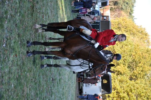 Die Niedersachsenmeute wird geführt von Max Sponagel, der in Eitze schon die seltsamsten Wildberührungen erlebt hat. In diesem Jahr werden am gleichen Tag in den angrenzenden Jagdrevieren Drück- und Treibjagden veranstaltet, da ist erst recht mit Überläufern zu rechnen. Das Gelände zwischen der Landstraße nach Walsrode und der Aller und die dort ansässigen Landeigner erlauben keine drastischen Variationen, deshalb hat er sich etwas Neues ausgedacht um den Hunden Arbeit zu machen. „Wenn ihr die Hunde nicht seht, dann sind sie nicht weg sondern machen ihren Job“, erklärt er bei der Ansprache.