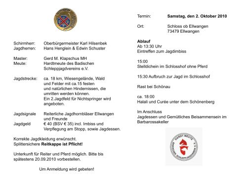 Am 2. Oktober jagt die Hardt-Meute des Badischen Schleppjagdvereins in Ellwangen.