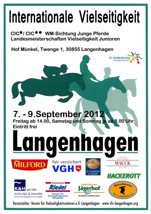 Großer Sport und ganz viel Spaß: Freitag beginnt das Turnier in Twenge. Auf dem Reiterhof Münkel in Twenge - Langenhagen, Region Hannover findet am Wochenende wieder das alljährliche internationale Vielseitigkeitsturnier CIC/CCI** des Vereins für Vielseitigkeitsreiterei e. V. statt. Schirmherrin ist Bundesministerin Dr. Ursula von der Leyen.